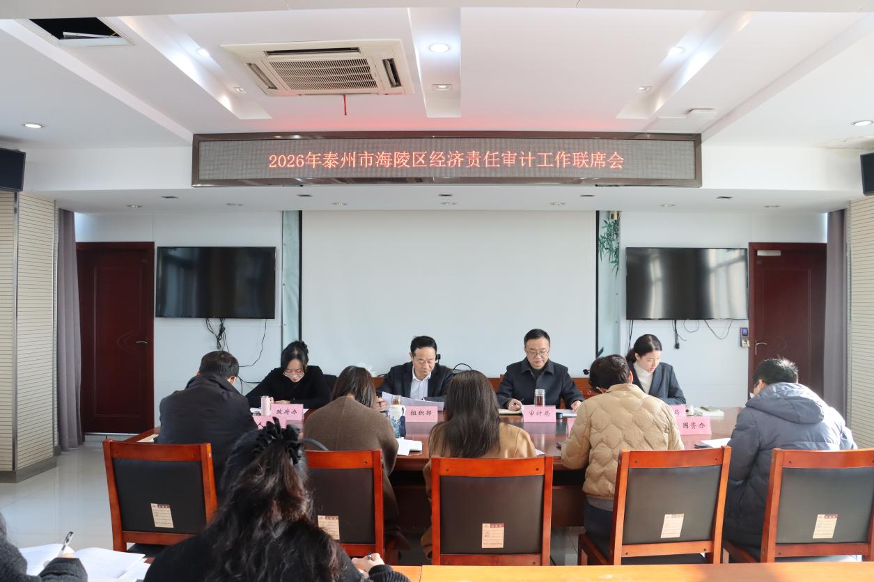 近日,海陵区召开经济责任审计工作联席会议,传达学习二十届中央审计委员会第三次会议和省委、市委审计委员会会议精神,通报2025年度经济责任审计工作情况,审议通过2026年度经济责任审计项目计划。