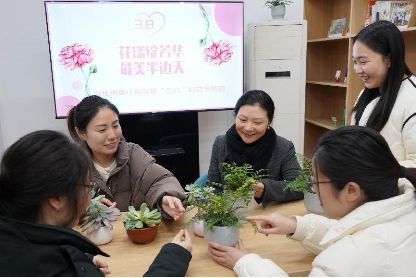 活动中,该局女同志集中学习习近平总书记关于妇女儿童工作以及家庭家教家风建设的重要论述,互相交流鲜花、绿植养护知识,分享工作、生活中的趣事逸情。在“三八”国际劳动妇女节到来之际,兴化市审计局组织全局女同志开展“花漾绽芳华 最美半边天”庆祝“三八”妇女节活动,引导其在繁忙审计工作之余舒缓身心、丰富生活。