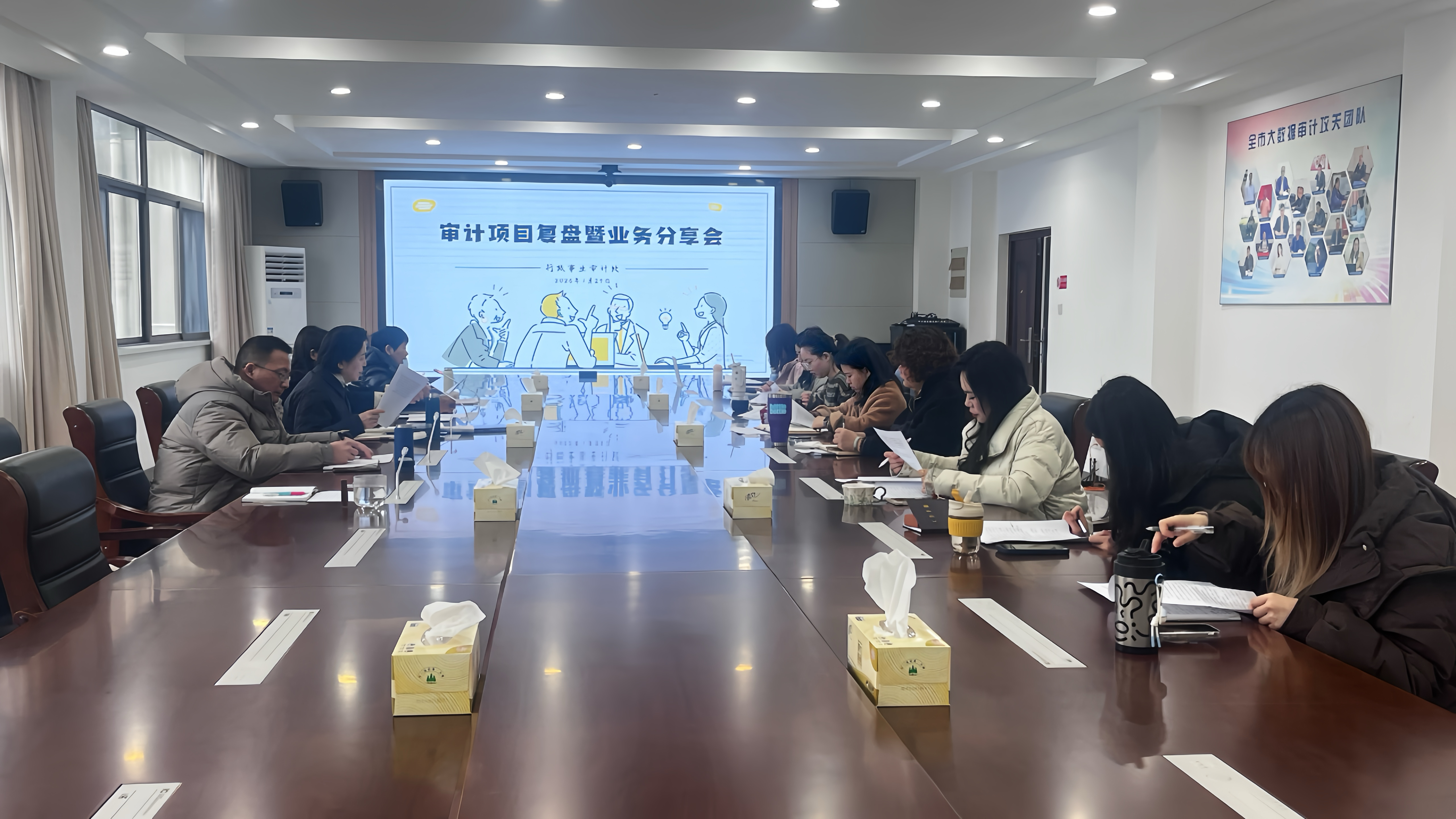 为深入贯彻落实全省审计工作会议、市委审计委员会会议精神,扎实推进“强研究、提质效”行动落地见效,近日,市审计局副局长顾军召开分管处室审计项目复盘暨业务分享会。